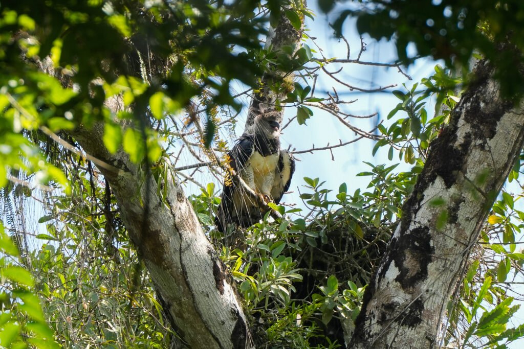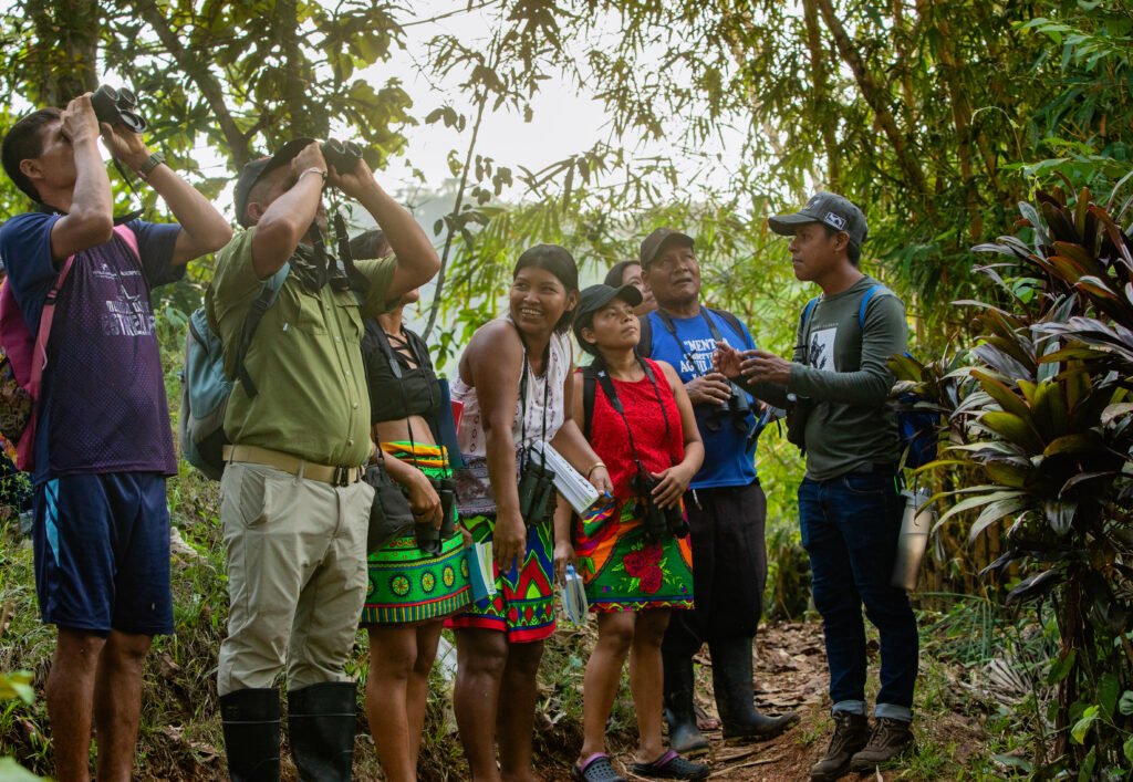 Desde hace más de veinte años, la Fundación ha desarrollado un modelo de monitoreo comunitario en territorios indígenas del Darién, centrado en la observación y seguimiento de aves rapaces como indicadores ecológicos clave. A través de la formación de parabiólogos Emberá y Wounaan, se recopilan datos sistemáticos sobre presencia, reproducción, uso de hábitat, amenazas y desplazamientos de especies como el Águila Arpía, otras aves rapaces, sus presas y otros elementos de la biodiversidad asociada a sus ecosistemas.